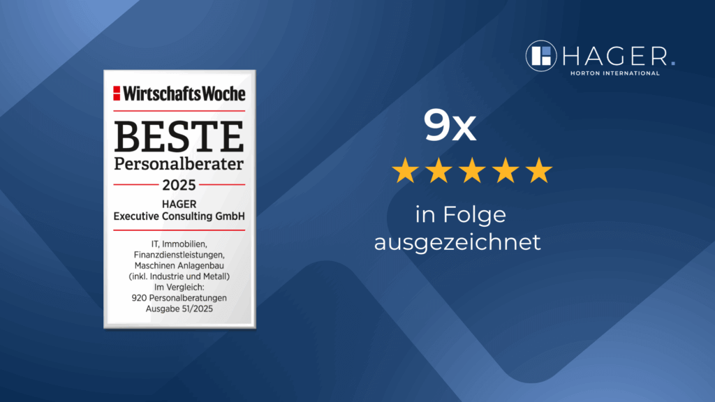 Frankfurt am Main, 12.12.2025: Die WirtschaftsWoche hat HAGER Executive Consulting „Beste Personalberater 2025“ erneut ausgezeichnet – bereits zum neunten Mal in Folge. Die wiederholte Ehrung unterstreicht die nachhaltige Beratungsqualität, mit der HAGER seit 30 Jahren Maßstäbe setzt.